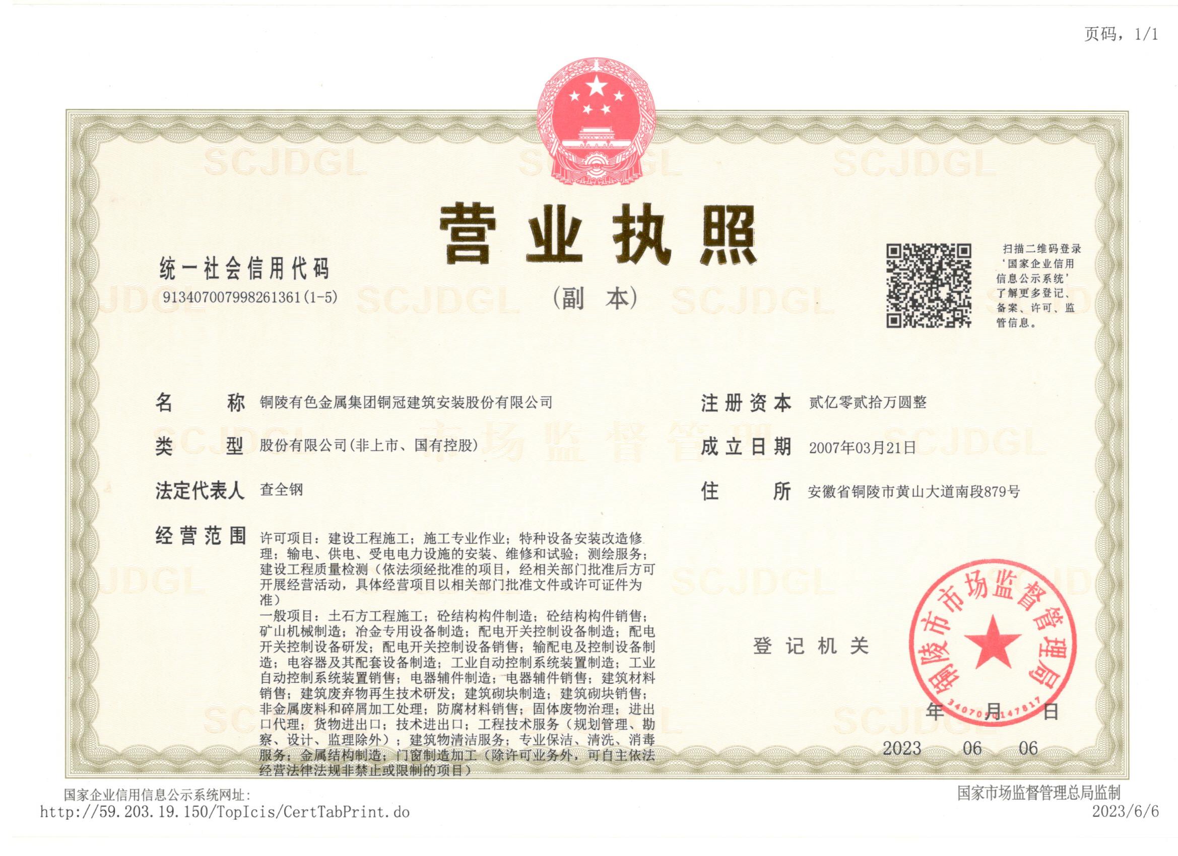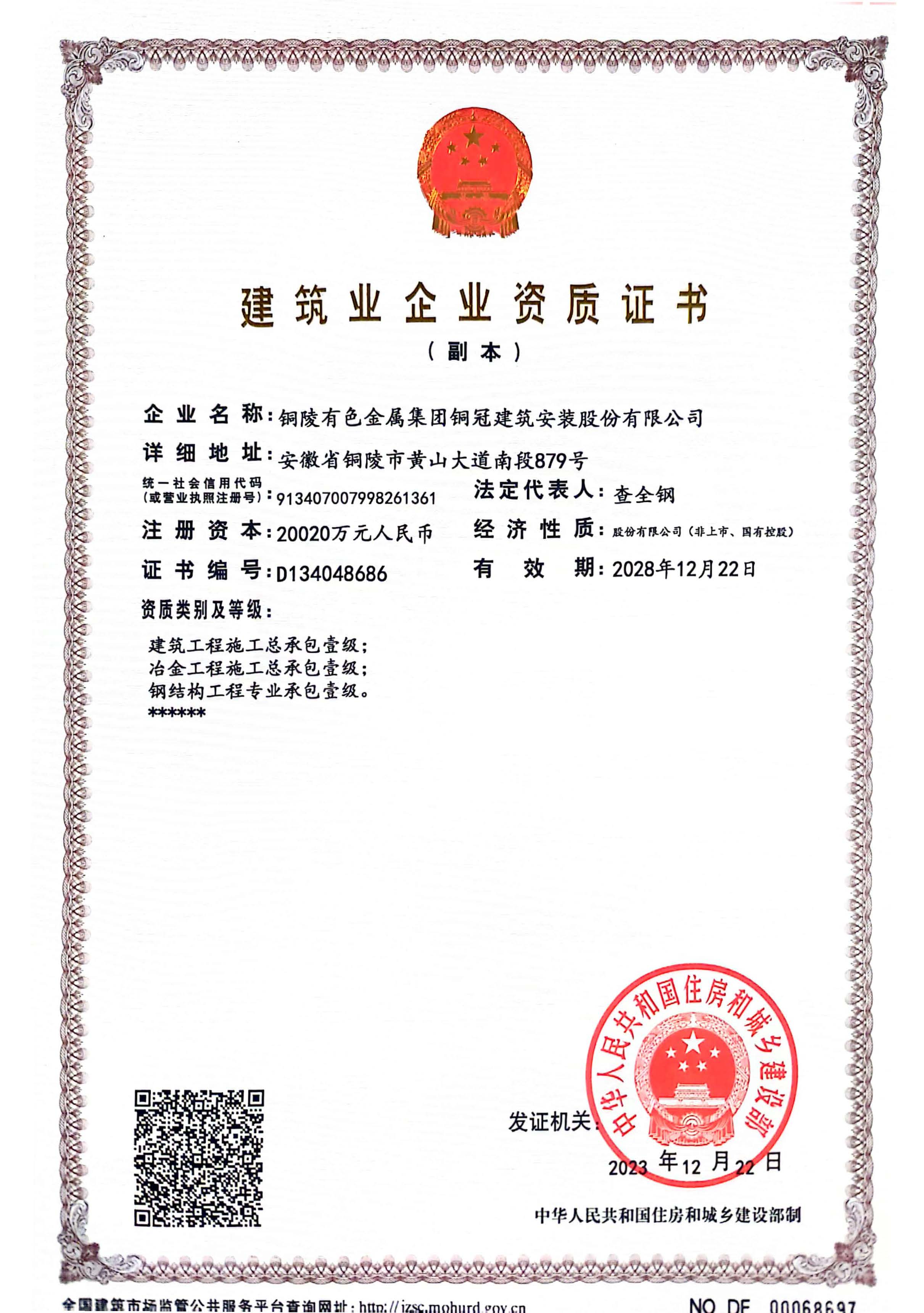有色金屬工業(yè)建設(shè)工程質(zhì)量檢測機構(gòu)資質(zhì)證書